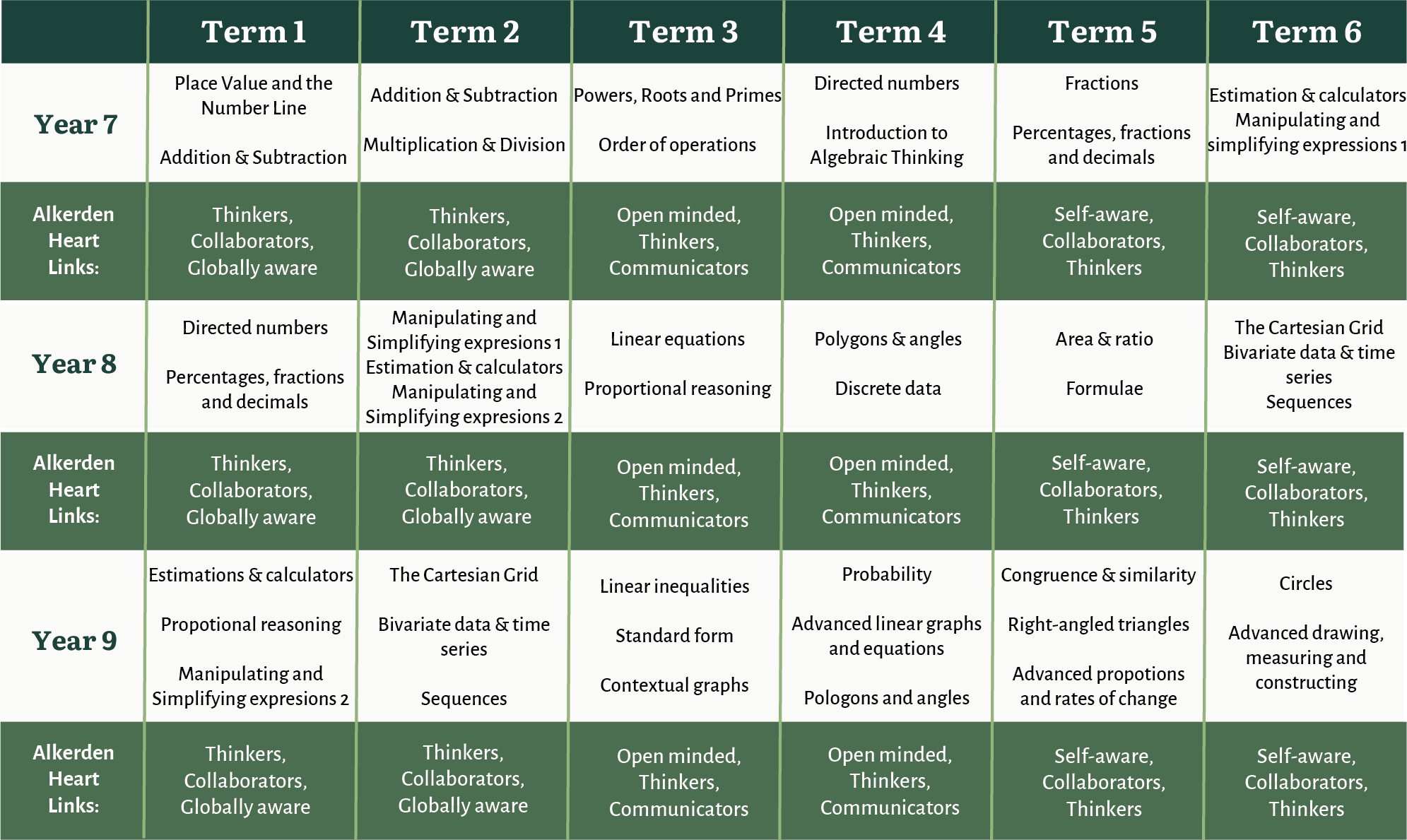 Above all, Maths at Alkerden reflects our Alkerden Heart - nurturing learners’ curiosity, developing logical thinking, and supporting every individual to flourish.